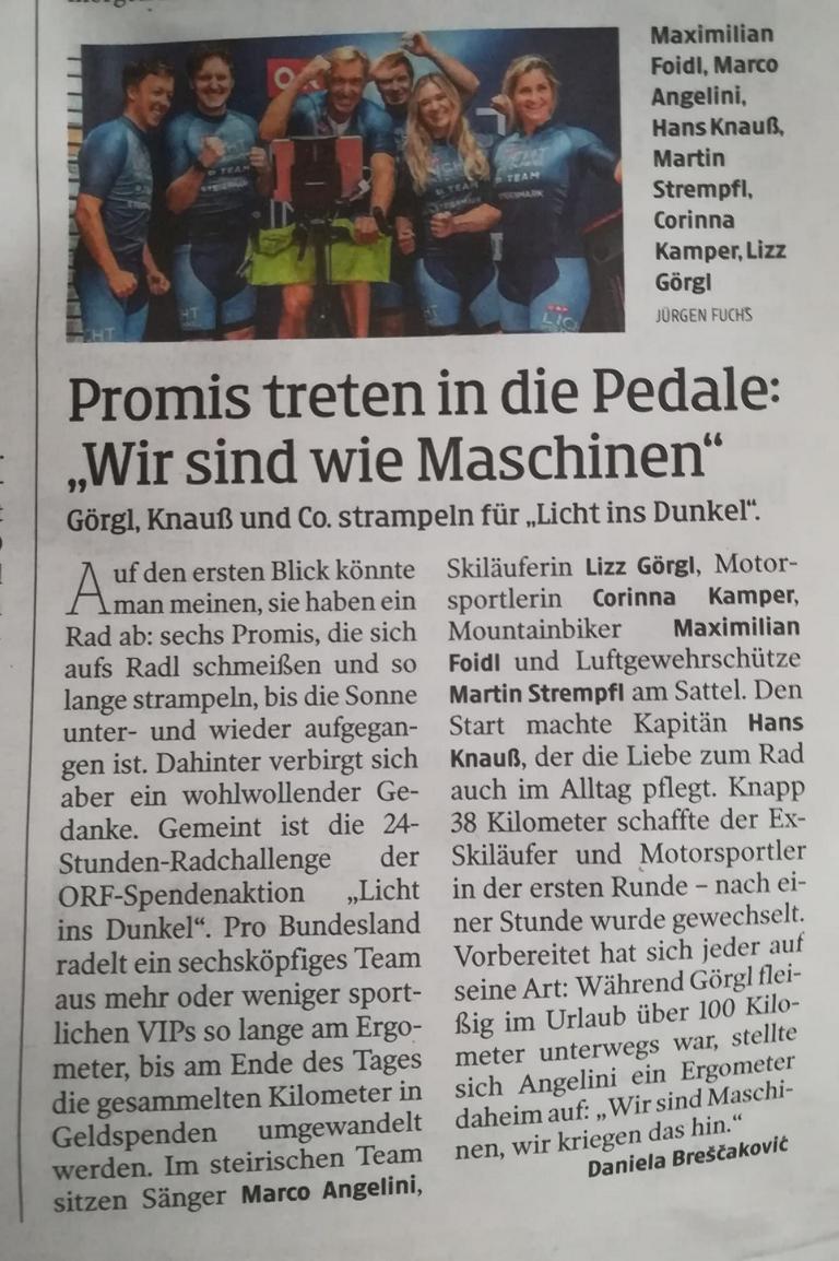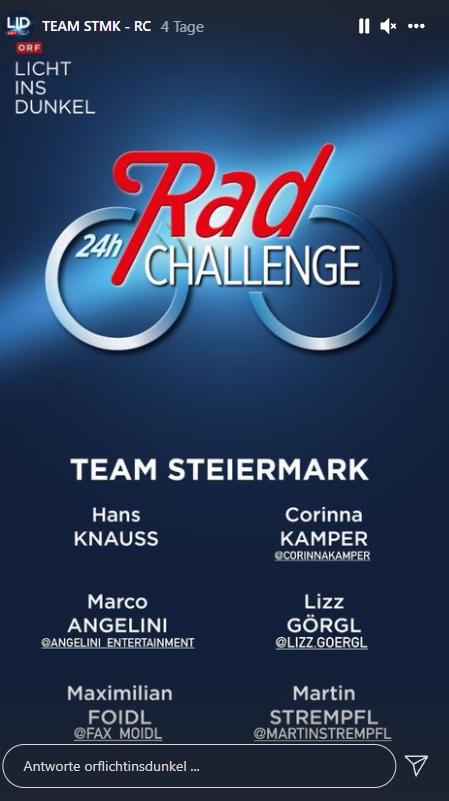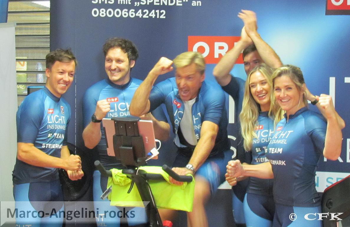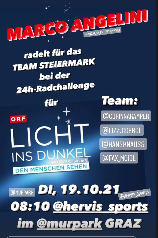 Pünktlich um 8.10 Uhr startete am 19.10.2021 die diesjährige 24 Stunden-Radchallenge im Hervis-Store im Murpark Graz. Ein Team aus sechs Prominenten trat 24 Stunden lang abwechselnd in die Pedale der Spinning Bikes, um für die Aktion „Licht ins Dunkel“, die Spenden für Menschen mit Behinderung und Familien und Kinder in Not in Österreich sammelt, möglichst viele Kilometer zu schaffen. Pro gefahrenem Kilometer spendeten die Sponsoren anschließend 100 € an die Aktion.