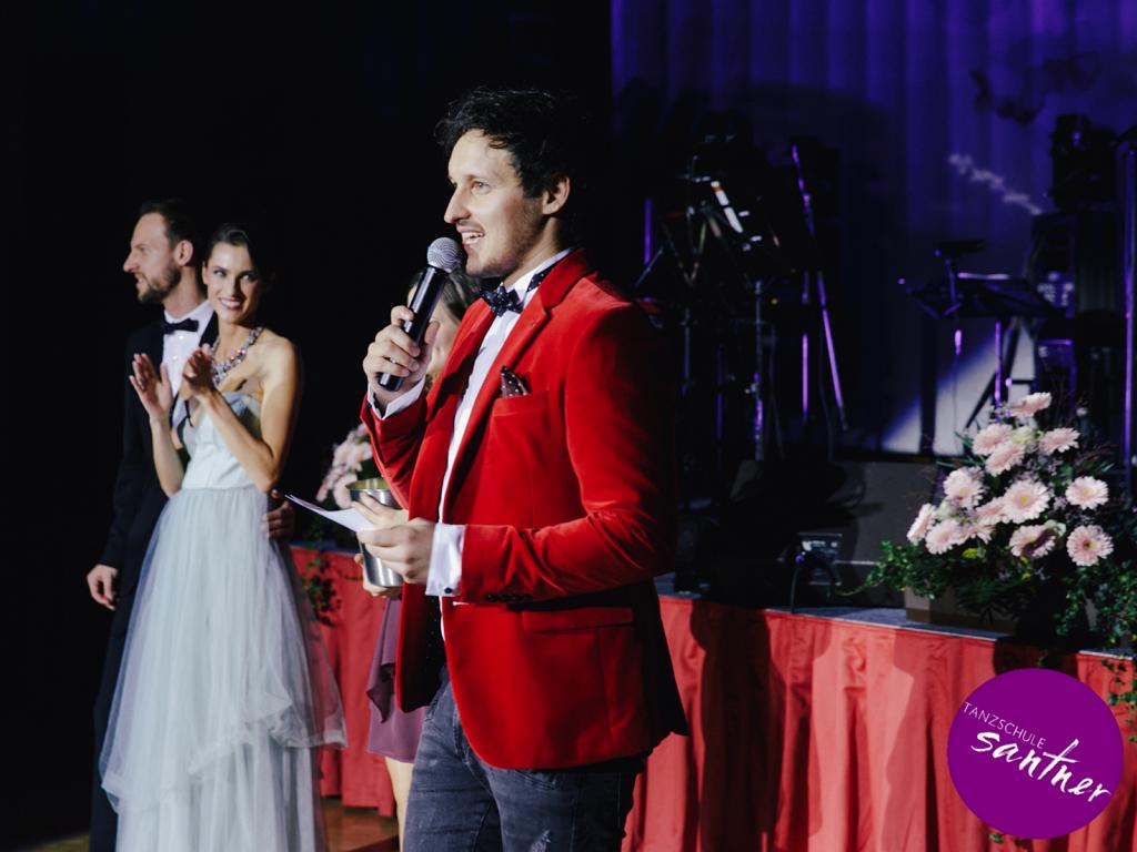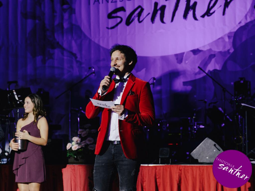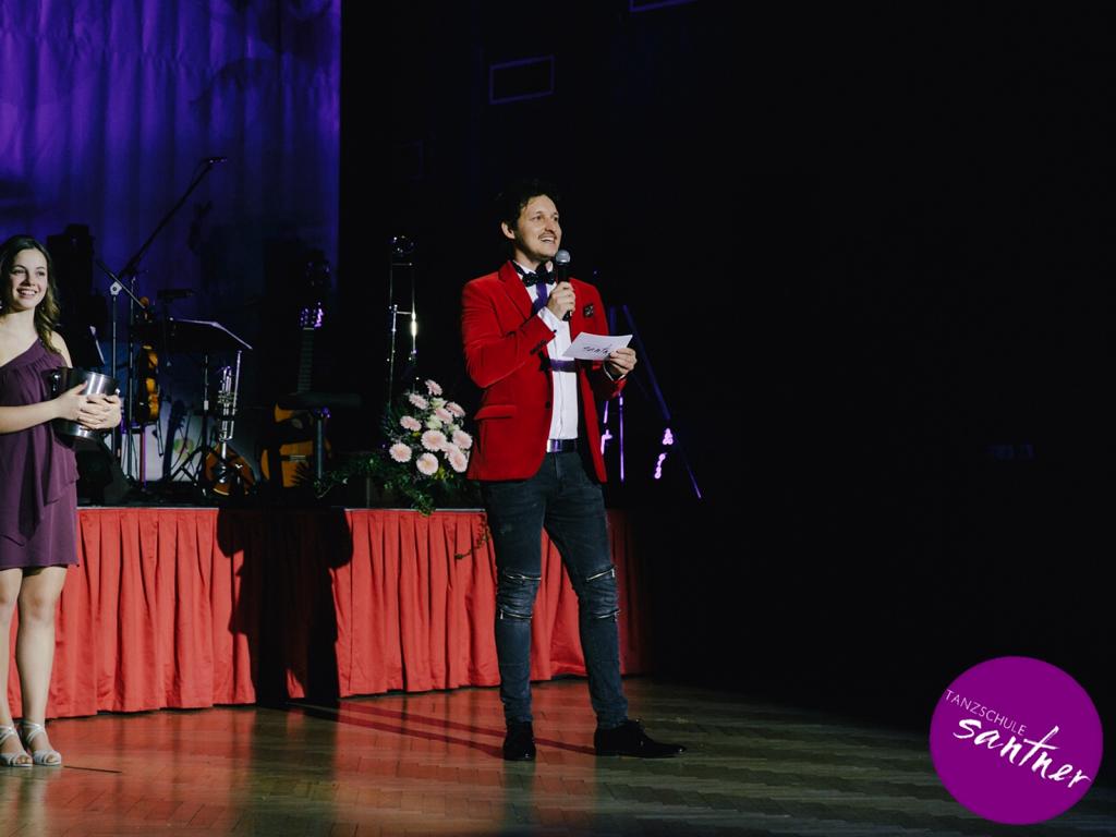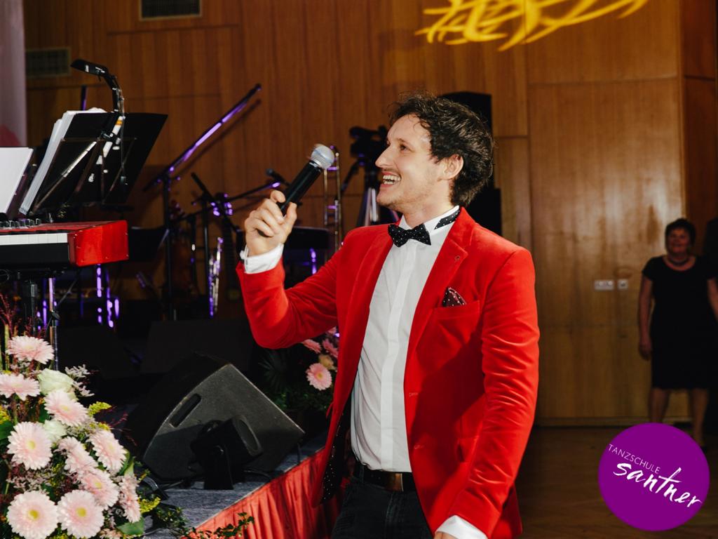 Das abwechslungsreiche Programm, das vom Ballorchester Eddie Luis begleitet wurde, bot jedoch auch Raum für beeindruckende Choreographien der Tanzlehrer, unter anderem für eine Showeinlage von Maria und Christoph Santner zu „Feeling Good“, gesungen von Marco.