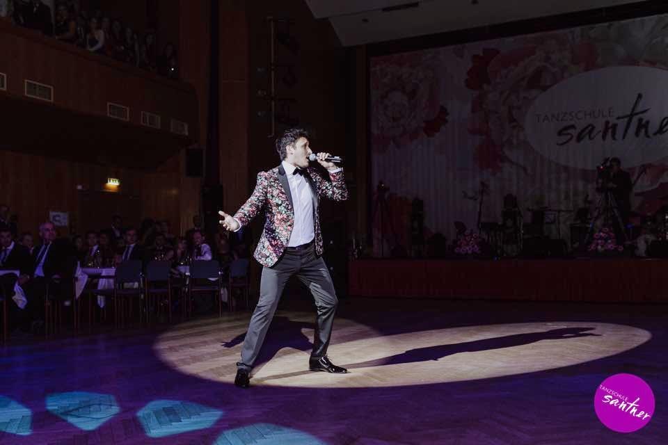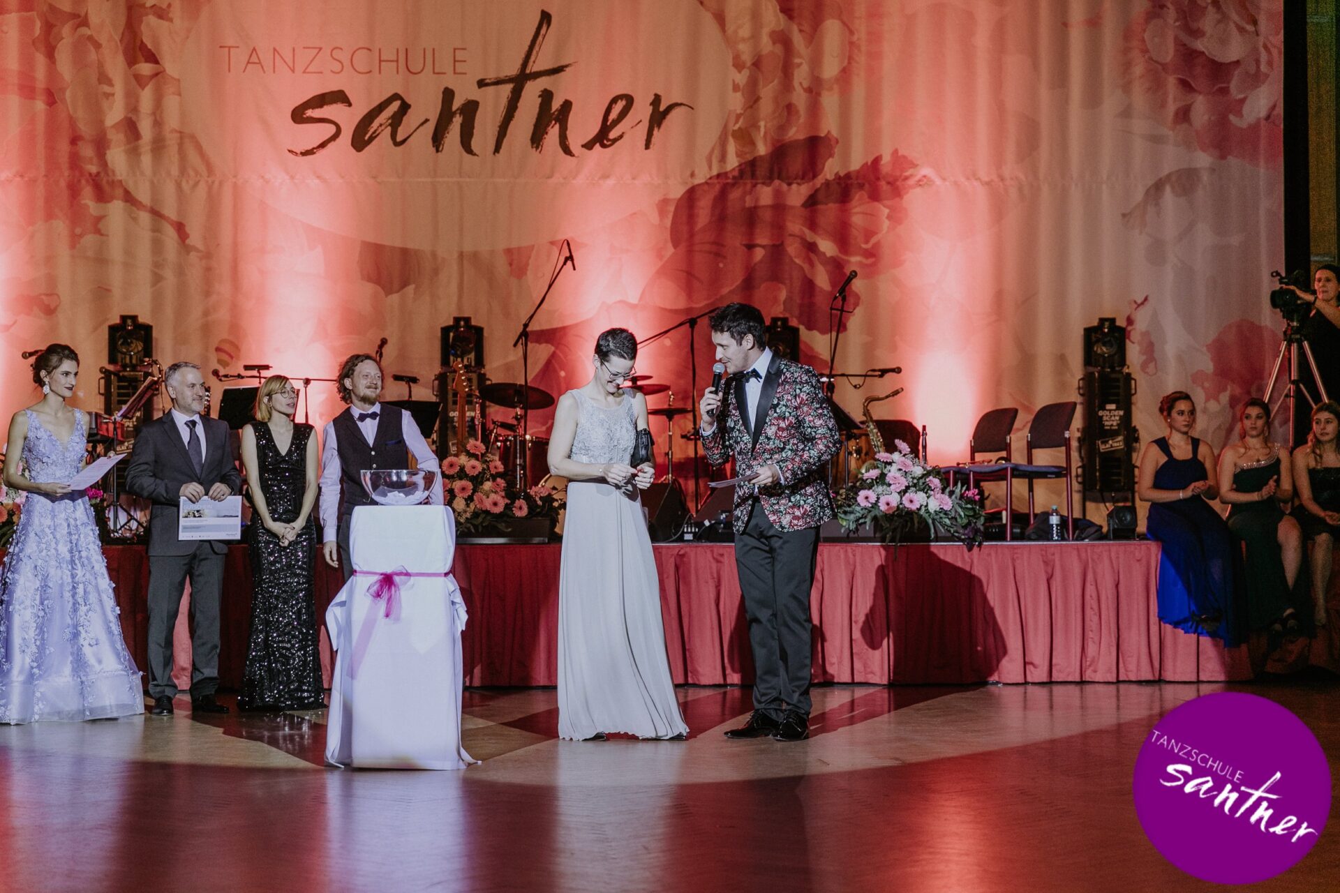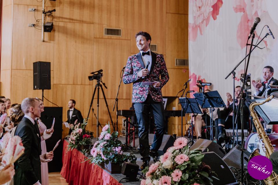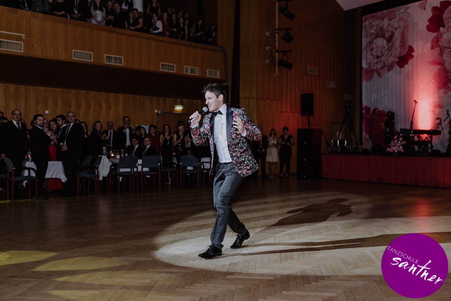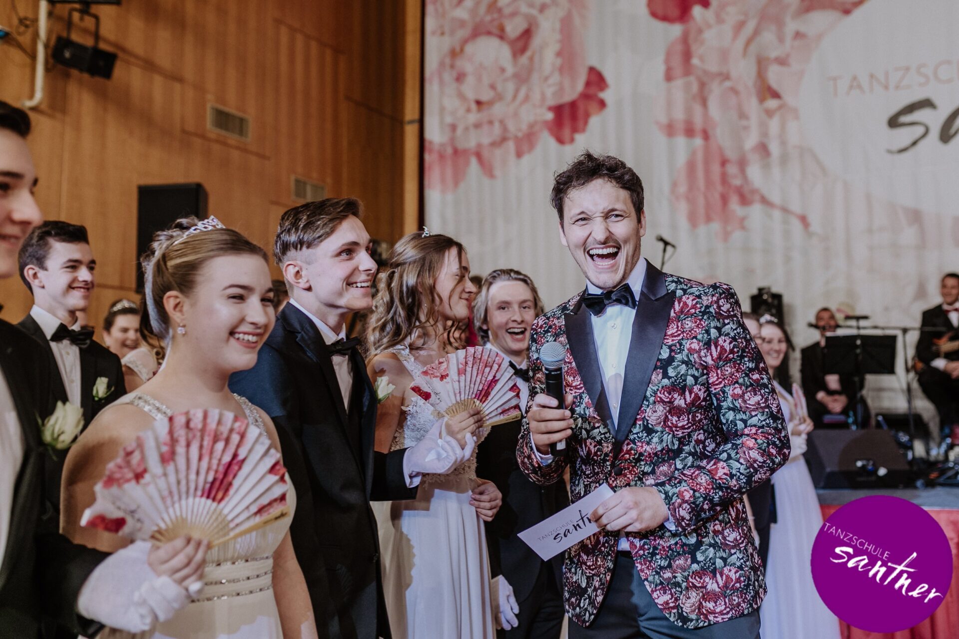 Auch beim zweiten Debütantenball der Tanzschule Santner führte Marco gewohnt lässig und unterhaltsam durch den Abend, der musikalisch – wie schon im Vorjahr – vom Ballorchester Eddie Luis begleitet wurde.