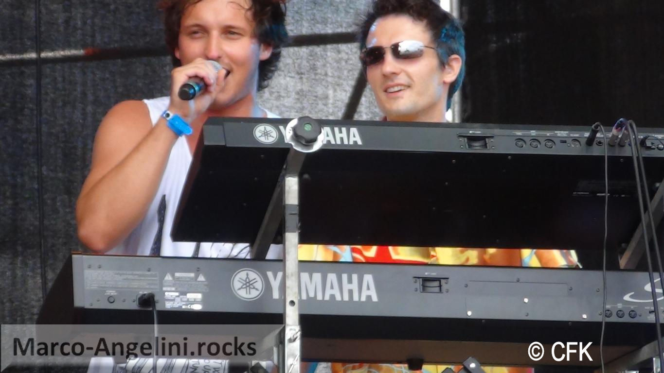Und damit wirklich alle Zuschauer den Auftritt miterleben konnten, wurde er auf den Großleinwänden zu beiden Seiten der Ö3-Bühne übertragen, denn bereits am Nachmittag war das Festivalgelände schon gut gefüllt und die Bühne von den hinteren Bereichen aus nicht mehr einsehbar.