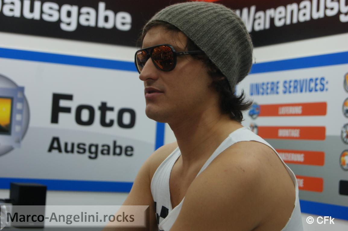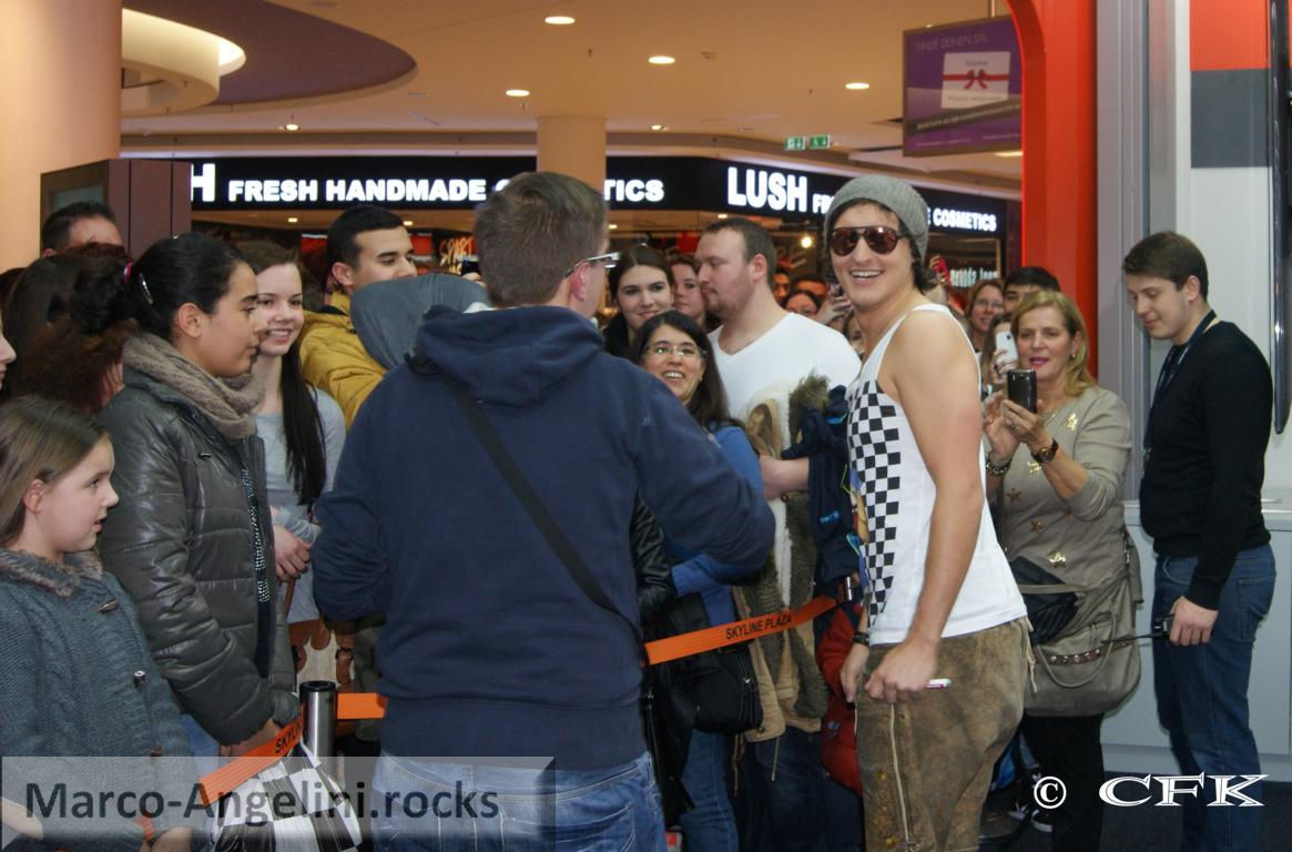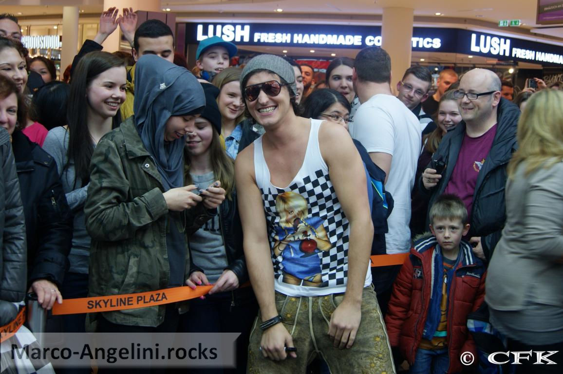 Das Skyline Plaza in Frankfurt stand als nächste Location am Sonntagnachmittag auf dem Programm. Durch eine technische Panne seitens des Veranstalters musste der Auftritt kurzerhand gestrichen werden, und Marco nahm sich dafür sehr viel Zeit für jeden einzelnen Fan, der so lange ausgeharrt hatte, ohne den angekündigten Auftritt erleben zu können.
